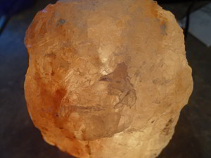 Salt lamps are large crystals of rock salt, often gathered from a source in the Himalayan Mountains or other sources of ancient sea salt from deep in the ground, including the Western United States. They are typically shades of pink from the minerals and other deposits within the salt. To make a lamp, a chamber is carved to insert either a candle or a small light fixture and bulb; the heat from those sources warms the salt, causing it to glow. They come in various sizes and are often used as accent pieces.